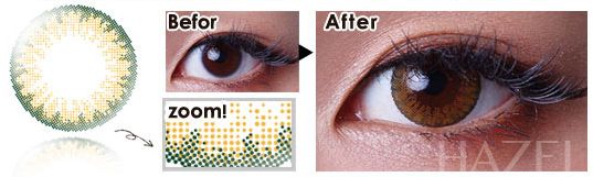 エバーカラーワンデーハグユーHugU ヘーゼル 度あり/度なし 14.5mm ワンデーカラコン装着画像をみると